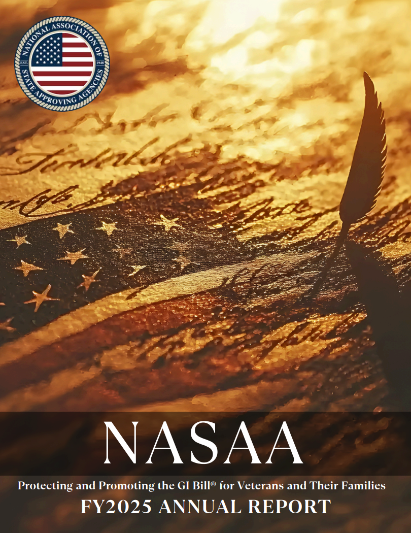 The National Association of State Approving Agencies (NASAA) is an organization comprised of the State Approving Agencies (SAAs) for each state plus several territories. There are a total of 53 SAAs. State Approving Agencies were established by Congress to work in partnership with the Department of Veterans Affairs (VA) to ensure that education and training programs funded under the GI Bill® are of quality and represent value to veterans, their families, and dependents, and the U.S. taxpayers. This annual report summarizes the activities of NASAA for the fiscal year.